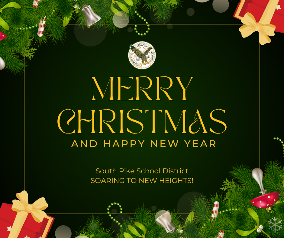 🎉✨ Season's Greetings from South Pike School District! As we soar to new heights, we're thrilled to wish you a Merry Christmas and a Happy New Year. May your holidays be filled with joy, laughter, and cherished moments. Thank you for being a cherished part of our community. Here's to a successful and uplifting 2024! 🎄🎆 #SoaringToNewHeights